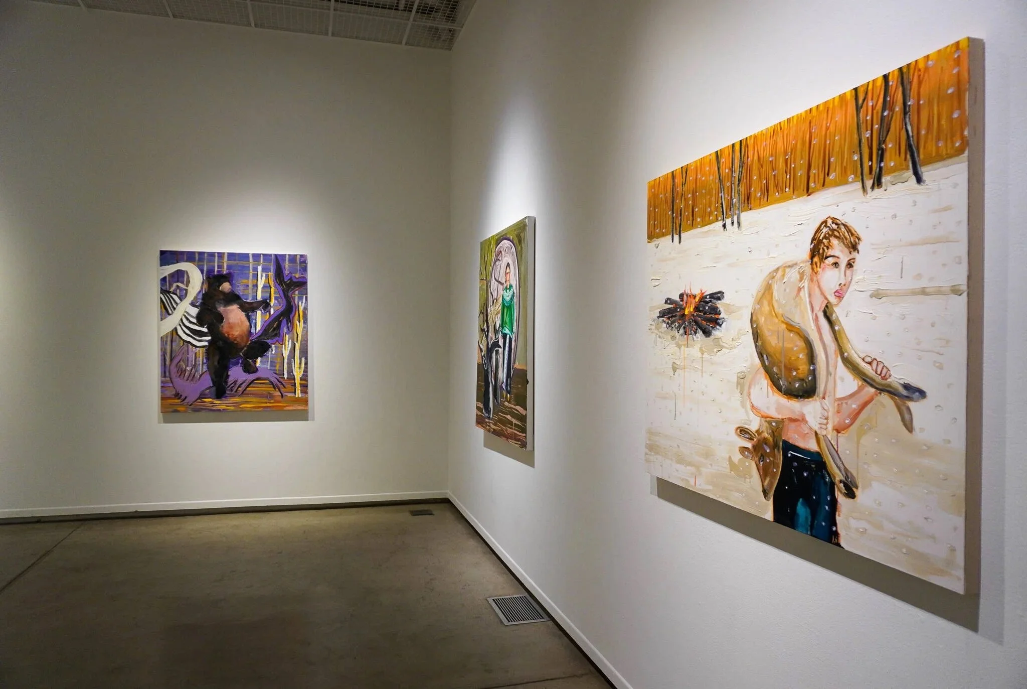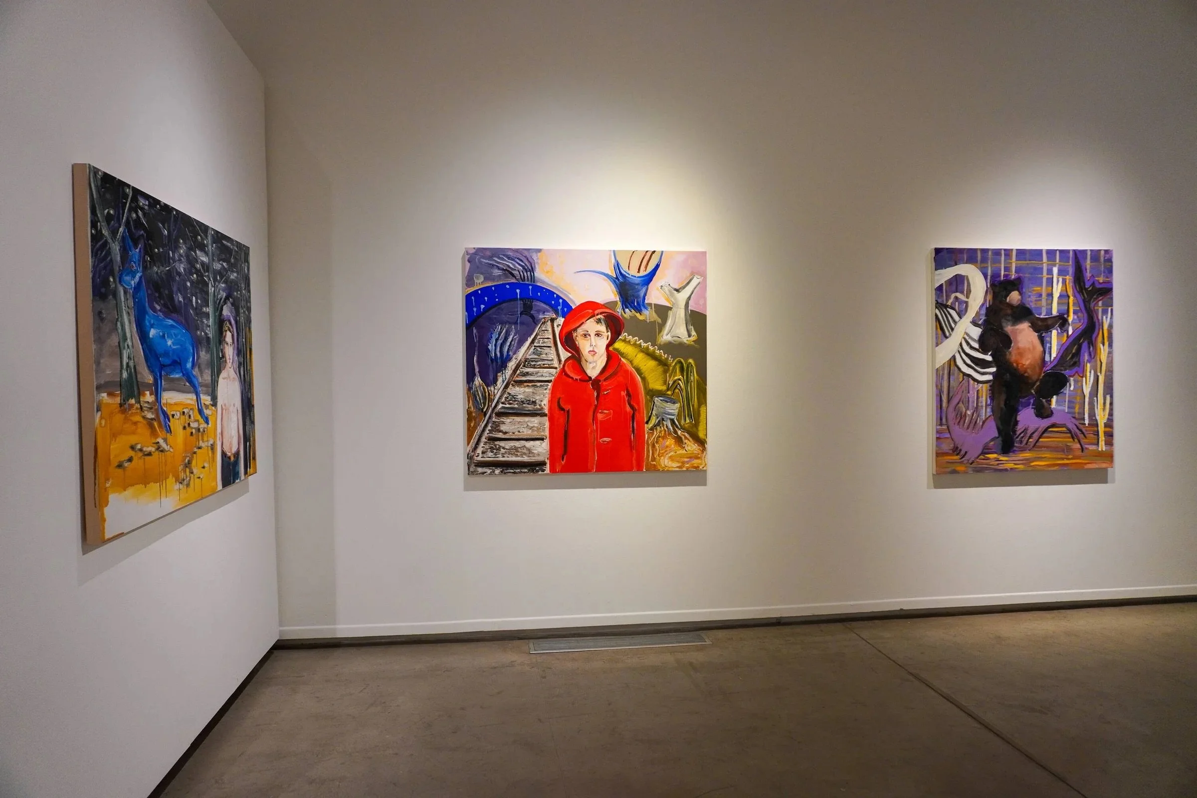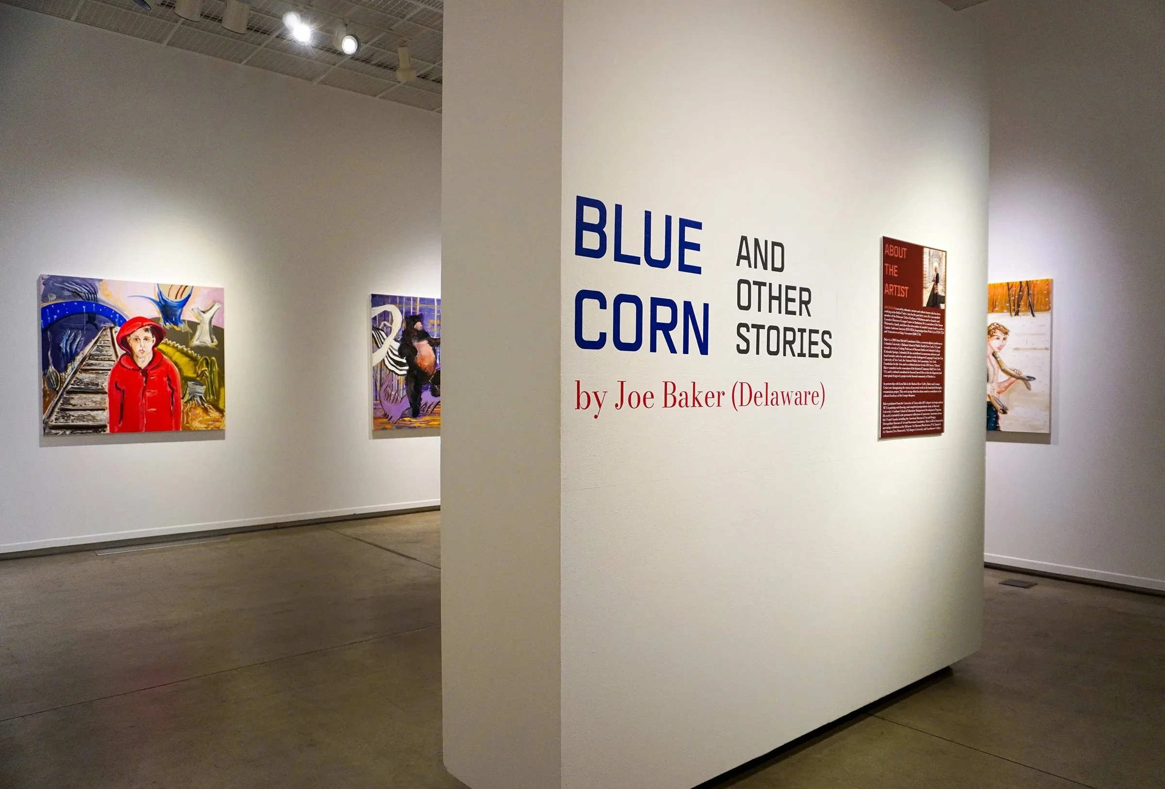 In 2023, Joe Baker (Delaware Tribe of Indians) had the opportunity to work in a studio and reconnect with painting. What came out of this time was this collection that weaves together six intersecting stories. These stories are cautionary, painful, trickster, horrific, and beautiful. As you engage with each painting, you will read a story directly from Joe about each piece. We welcome you to ask yourself which stories you connect to. What stories about yourself do you want to pass along?
