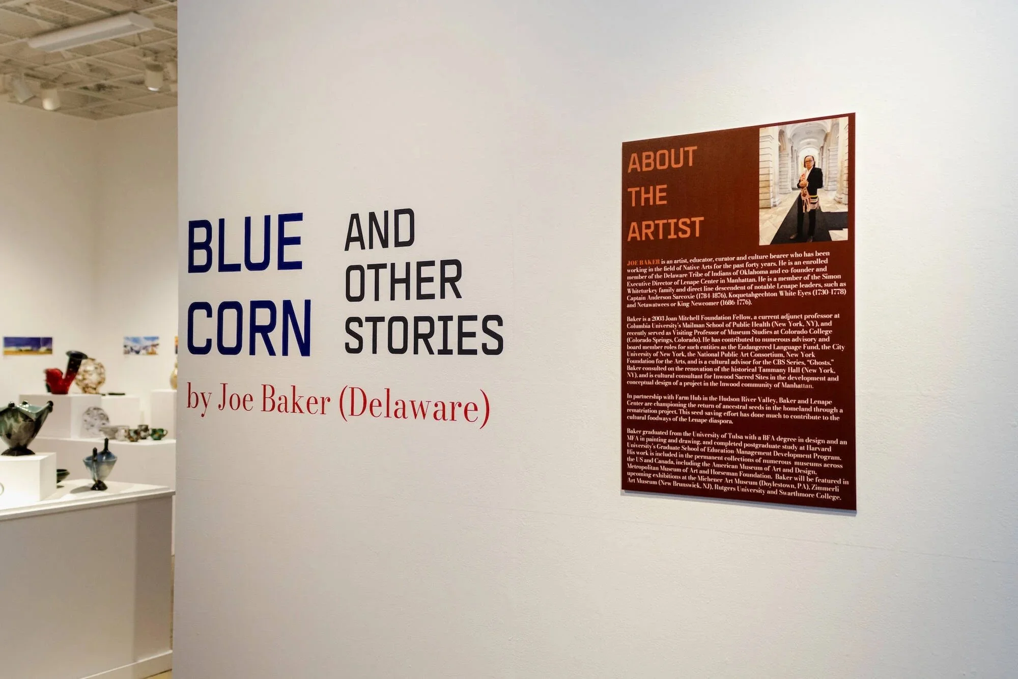 JOE BAKER is an artist, educator, curator and culture bearer who has been working in the field of Native Arts for the past forty years. He is an enrolled member of the Delaware Tribe of Indians of Oklahoma and co-founder and Executive Director of Lenape Center in Manhattan. He is a member of the Simon Whiteturkey family and direct line descendent of notable Lenape leaders, such as Captain Anderson Sarcoxie (1784-1876), Koquetahgechton White Eyes (1730-1778) and Netawatwees or King Newcomer (1686-1776).