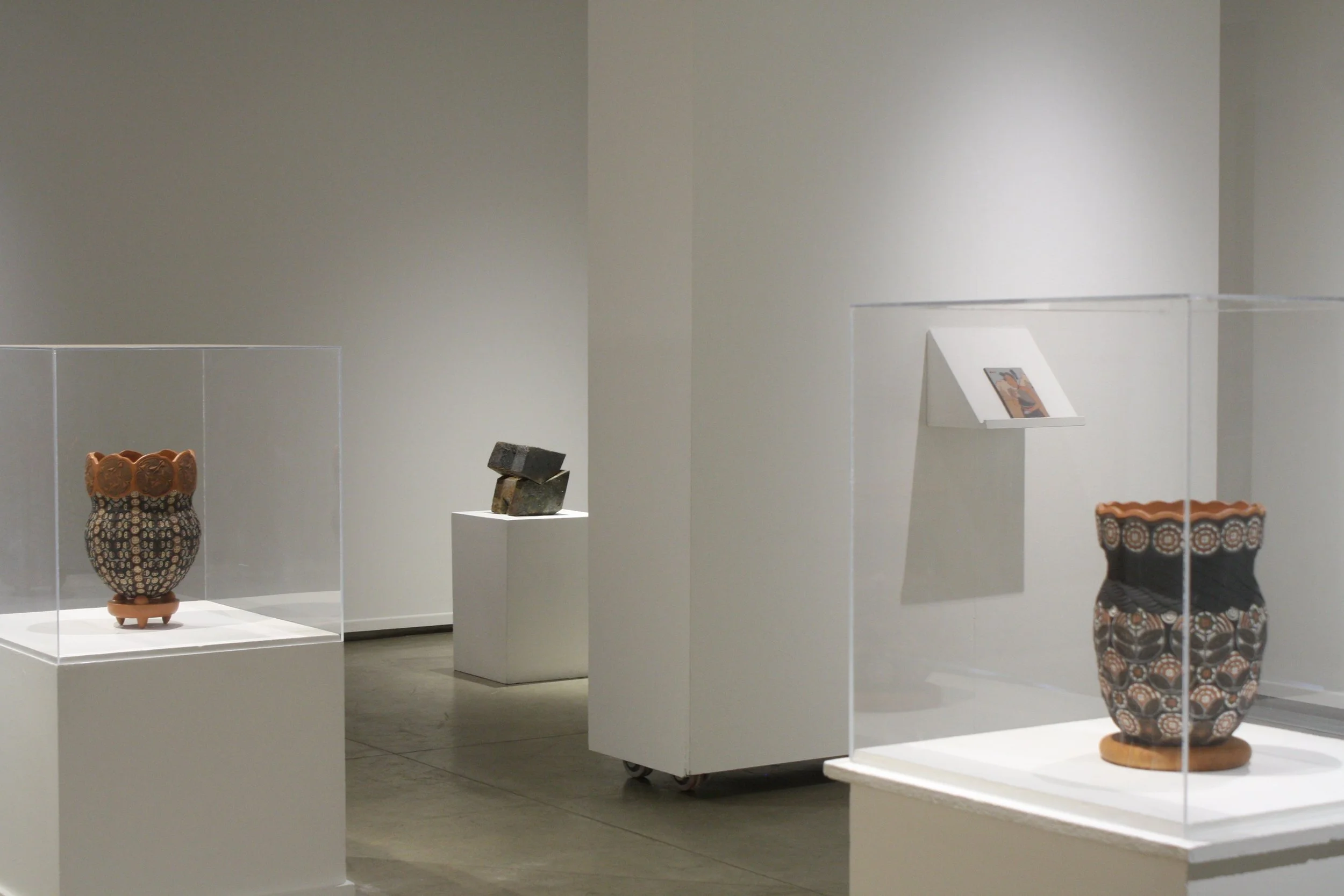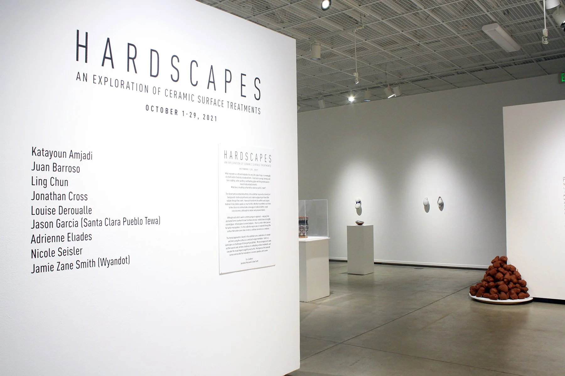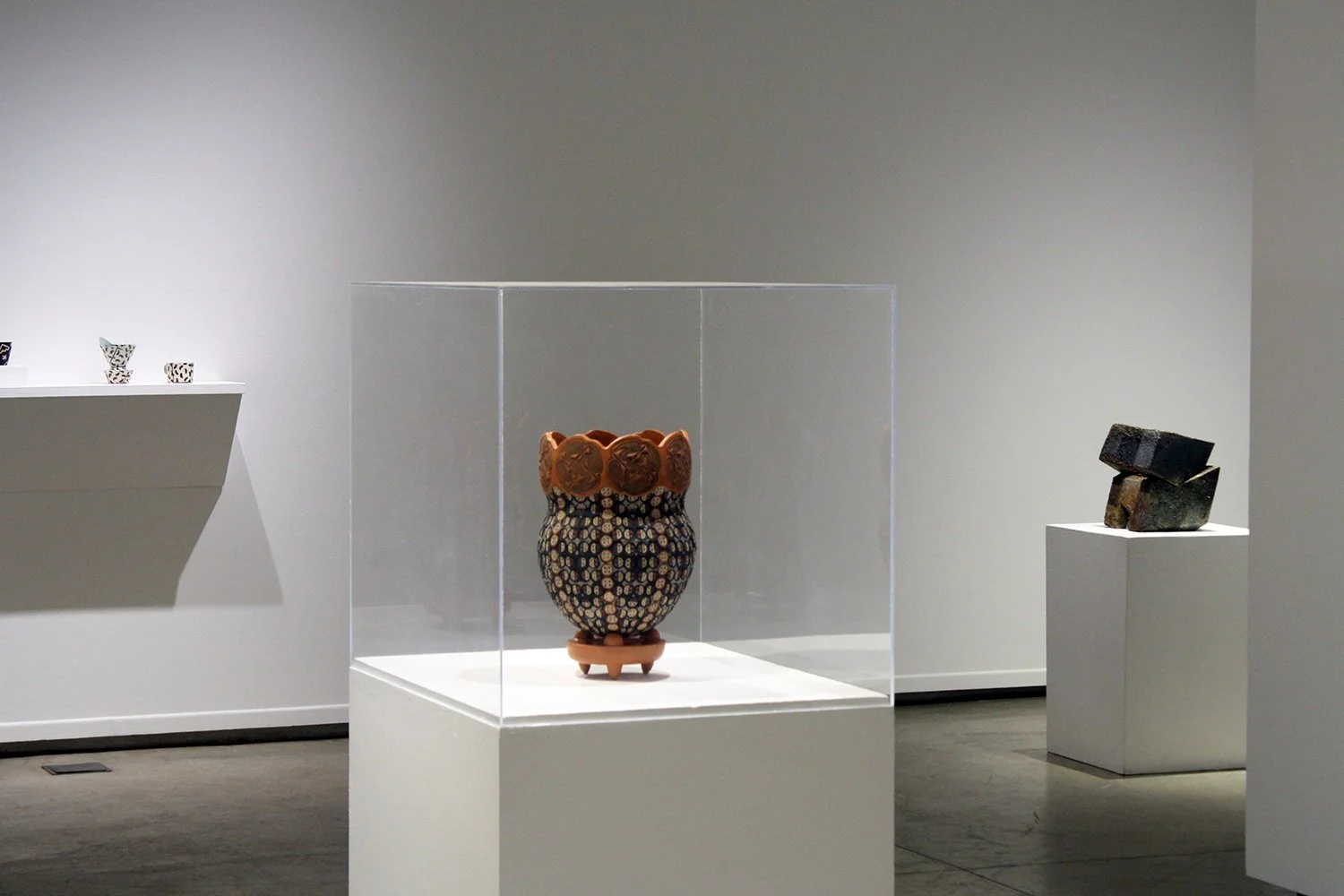 The myriad approaches shared in this exhibition are a celebration of concept and form using the surface as a vehicle for experimentation. Each is a landscape, or a hardscape of divergent possibilities. We encourage you to seek out the nuances and, at times, boldness in contrasting surface treatments, and consider the visual impact sought by each artist. We hope you find yourself curious and excited for innovations in ceramic practice yet to come.